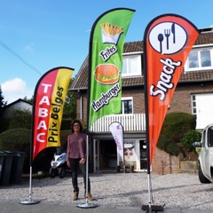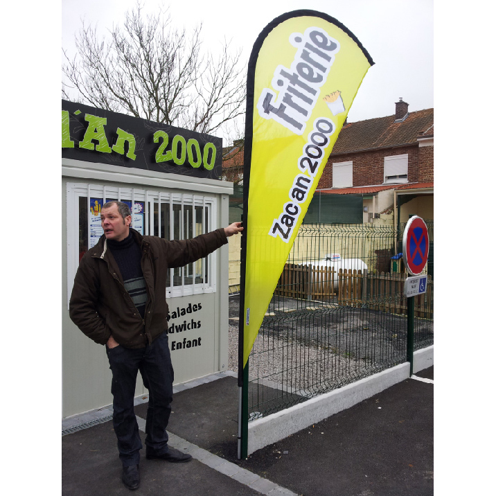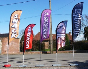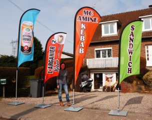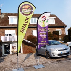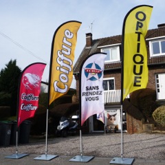 - Le drapeau publicitaire est une enseigne mobile très économique,